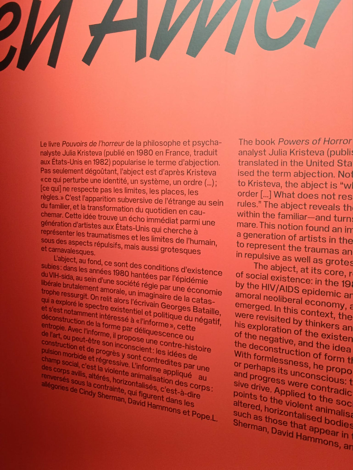 Koneksje między postmodernistyczną filozofią a sztuką współczesną. Teorie korespondujące z danymi dziełami sztuki, idące z nimi w parze, niejako odpowiadające na pytanie: co, jak, dlaczego – i pozwalające przez tę już daną refleksję wejść głębiej w dzieło, w myślenie i akt kreacji artysty. Brzmi to jak przepis na genialną wystawę – wystawę, w której mamy dwa zupełnie odmienne środki ekspresji i refleksji, wspierające siebie nawzajem, środki, które wspólnie nadają głębię. Taka miała być wystawa w Palais de Tokyo. Tak była reklamowana i dla mnie osobiście brzmiała jak coś, co zapamiętam na niezwykle długo, gdyż fascynowały mnie – i fascynują – wszelakie takie połączenia i przecięcia. Filozofia, sztuka i literatura – te rzeczy są dla mnie osobiście nierozerwalne i właśnie jako takie mnie fascynują. Stąd moje rozczarowanie i niejakie zgorzknienie jest gigantyczne i być może nieco przedramatyzowane. Niemniej – jest słuszne.